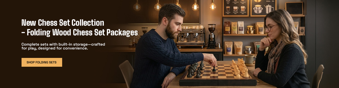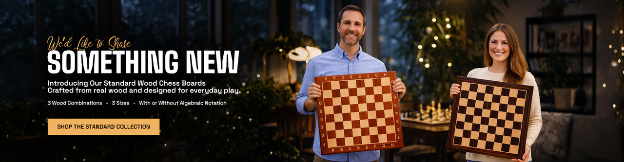 The Chess Store offers the avid player and collector a vast selection of wood chess pieces, boards, and complete sets. You will find traditional wood chess pieces that are perfect for tournament games to handcrafted masterpieces to leave out and display for the art they are. Explore our many natural wood chess boards including our exclusive Mission Craft solid wood boards. You will also find chess boards ideal for schools and clubs including vinyl, silicone, and floppy mousepad boards.