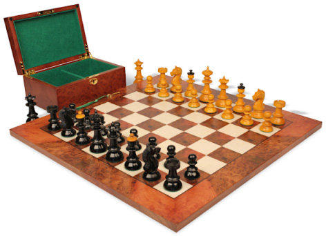Quality craftsmanship set that's eye catching! A beautiful addition to any room. I would recommend this set to anyone looking to buy a quality chess set. Great service from The Chess Store as they shipped within a day, Fed Ex ground service was at a snails pace as usual. Would suggest an alternative shipping method for future orders.